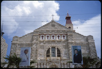 Tourists with a guide looking to the Madaba Mosaic Map in St. George's Church