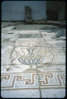 Mosaic floor, depicting two deer or goats and pair of doves facing a palm tree with dates