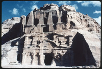 View of the facade of a tomb in Petra