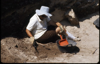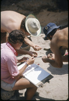 Caesarea 1974 excavation - Taking down a Munsell Reading