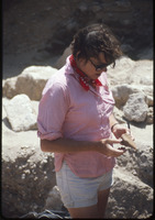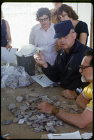 Caesarea 1974 excavation - Supervisor examining pot-sherd
