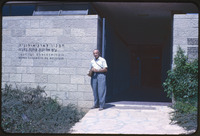 Man standing outside the Institut d'archéologie Reine Elisabeth de Belgique
