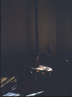 Living room of Nabulsi Building apartment with Robert Schick playing chess