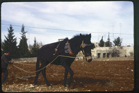 Palestinian boys plowing