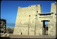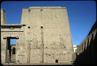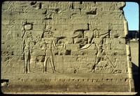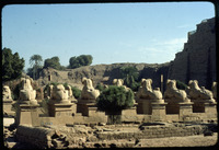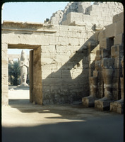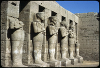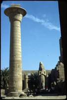 tatue of Pinedjem I in Karnak with column with open papyrus capital