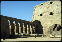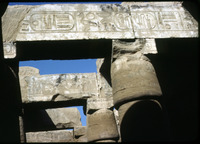 Detail of decorated columns in Hypostyle Hall of Karnak