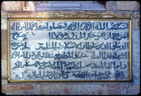 Ayyubid marble inscription panel used to commemorate the digging of a trench around the city walls, located in the Dome of Yusuf