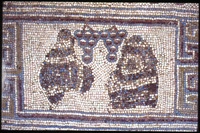 Khirbet Anab al-Kabir - defaced mosaic depicting birds and grapes