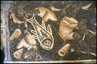 Umm er-Rasas - mosaic depicting fish on a plate in Church of St. Stephen