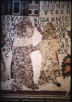 Umm al-Rasas - Church of St. Stephen - mosaic of two people with Greek text