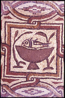 Umm er-Rasas - mosaic depicting fish on a plate in Church of St. Stephen