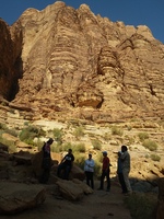 Jordan. Wadi Rum, Ain Shallaleh, SCHEP and USAID teams view rock art from pathway