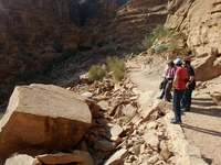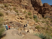 Jordan. Wadi Rum, path to Ain Shallaleh, SCHEP and USAID teams, Glenn Corbett of ACOR, Mohammed Domyan of the Wadi Rum Protected Area