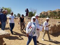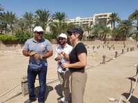 Jordan. Aqaba (Ayla), Islam Sleim (left), site steward Mustafa Ajlouni (right), USAID team members checking the progress of site development work at Ayla