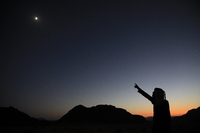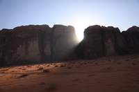 Jordan. Wadi Rum, moonlight with mountain to the side