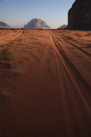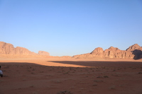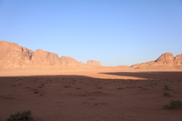 Jordan. Wadi Rum, general view of desert with mountains in background