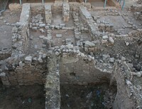 Jordan. Madaba, Madaba Archaeological Park West, 2016 excavation team working in Building 1 of late 19th-century settlement, looking north