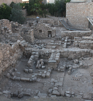 Jordan. Madaba, Madaba Archaeological Park West, general view looking south of the late 19th-century settlement, including, from bottom to top, Courtyard 3, Building 2, and Building 1
