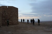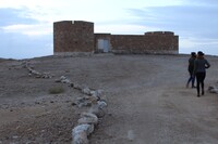 Jordan. Wadi Araba, Bir Madhkur, visitors pass by the police station to the northeast