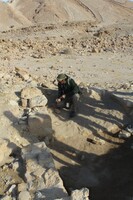 Jordan. Wadi Araba, Bir Madhkur, Site Steward Mohammad Saedeen on the border line between Khirbat Bir Madhkur and modern Islamic cemeteries