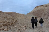 Jordan. Wadi Araba, Bir Madhkur, visitors walking on ad-Dlayi path, ancient incense route