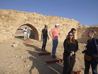 Jordan. Ghawr as Safi, visitors at sugar factory (Masna’ as-Sukkar) archaeological site