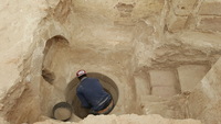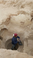 Jordan. Ghawr as Safi, sugar juice collecting vats at sugar factory (Masna’ as-Sukkar), SCHEP team member