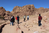Jordan. Petra, Temple of the Winged Lions, pathway in front of temple, facing west, pictured: team members, USAID SCHEP team member