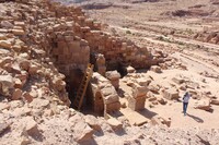 Jordan. Petra, Temple of the Winged Lions, southwest quadrant facing southeast, team member