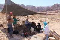 Jordan. Petra, Temple of the Winged Lions, team members in a sifting station