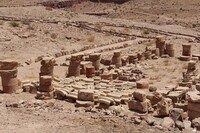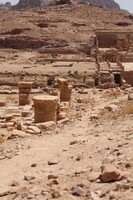 Jordan. Petra, Temple of the Winged Lions, lapidarium, pathway, Great Temple in background