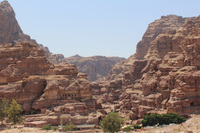 Jordan. Petra, Temple of the Winged Lions, Qasr al Bint as seen from TWL, with the old museum to the right