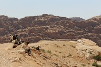 Jordan. Petra, Temple of the Winged Lions, local community member on donkey