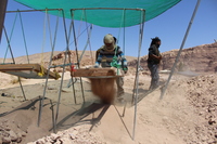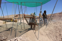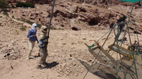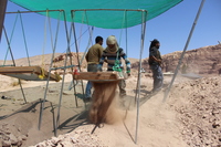 Jordan. Petra, Temple of the Winged Lions, sifting station, team members