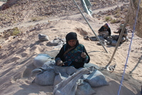 Jordan. Petra, Temple of the Winged Lions, team member sewing sandbags