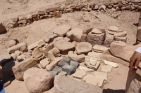 Jordan. Petra, Temple of the Winged Lions, architectural fragments and grinding stones