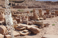 Jordan. Petra, Temple of the Winged Lions, lapidarium with asphodel flower in foreground