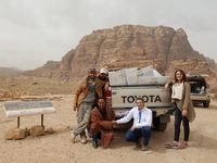 Jordan. Petra, Temple of the Winged Lions, Bassam Alfaqeer, Ahmad Mowasa, Shaka Alfaqeer, John (Jack) Green, Miriam Saleh, truck full of signs about to be installed
