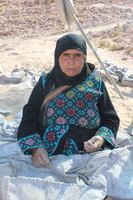 Jordan. Petra, Temple of the Winged Lions, team member sewing sandbags
