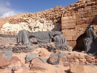 Jordan. Petra, Temple of the Winged Lions, southwest quadrant with geotextiles
