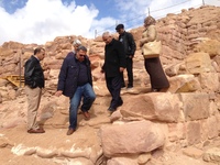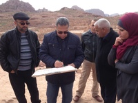 Jordan. Petra, Temple of the Winged Lions, Director General of the Dept. of Antiquities Dr. Monther Jamhawi with Jehad Haron, Elena Ronza, and Sana Al Hamadeen and Ghassan Al Deir of the Dept. of Antiquities