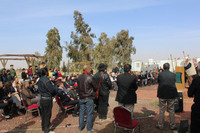 Jordan. Umm al Jimal, Prince Ra'ad bin Zeid giving a speech at groundbreaking ceremony, visitors