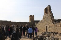 Jordan. Umm al Jimal, Bert de Vries giving tour, visitors