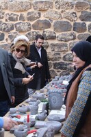 Jordan. Umm al Jimal, local crafts association of Umm al Jimal, visitors and local residents