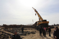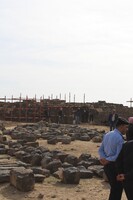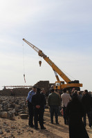 Jordan. Umm al Jimal, crane for restoration activities, Commodus Gate, Nizar Al Adarbeh, Jehad Haron, visitor