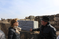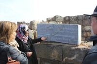 Jordan. Umm al Jimal, replica inscription for Commodus Gate in latin, visitors