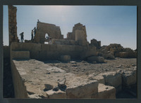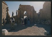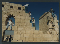 Qasr al-Hallabat - students climbing mosque