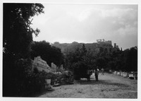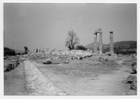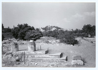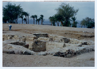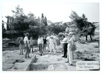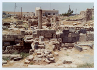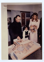 Jordan. Fr. Michele Piccirillo showing Her Majesty Queen Noor a model of the Roman street complex
