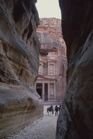 Jordan. Petra, View of Khaznet Far'oun (The Treasury) from the Siq