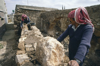 Jordan. Amman Citadel, Jabal Al Qala'a, during reconstruction of Temple of Hercules. Jordanian architect Ammar Khammash (left) and Chrysanthos Kanellopoulos (right)